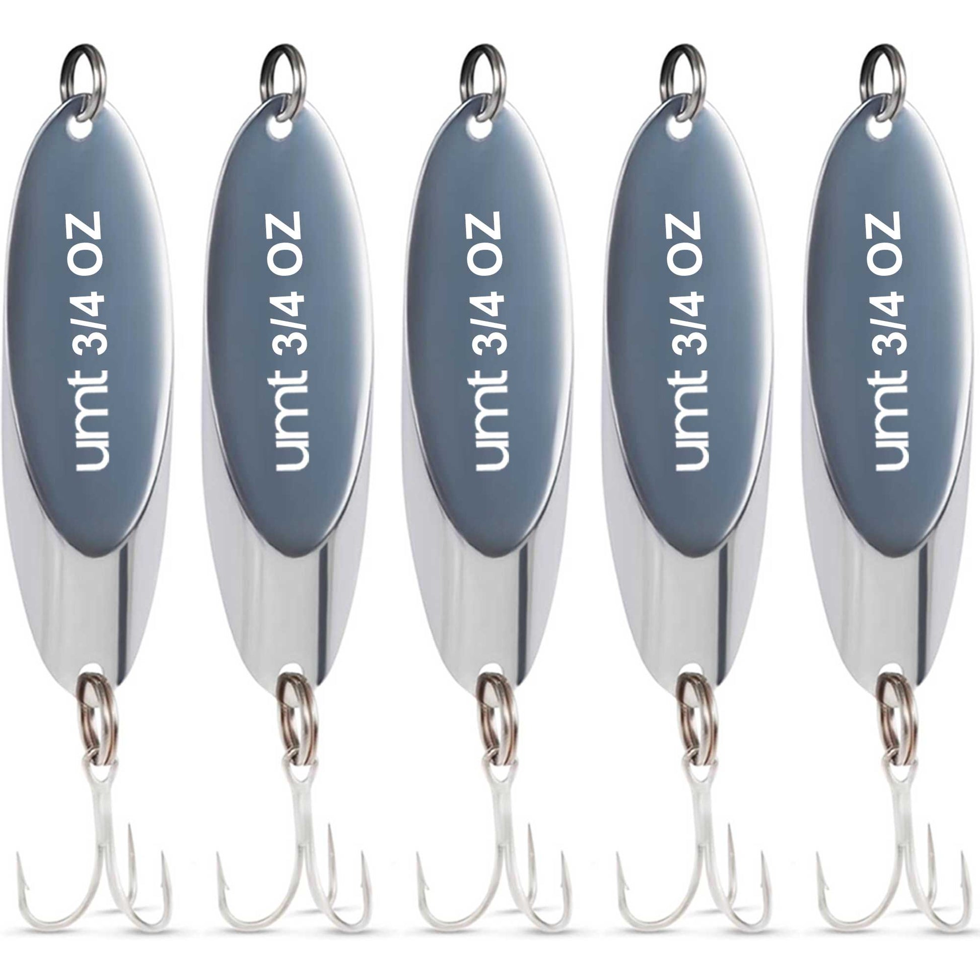Chrome Spoon Lure set with 3/0 treble hook - 3/4oz, 1oz, 2oz - 1, 5, 10 Pack Options